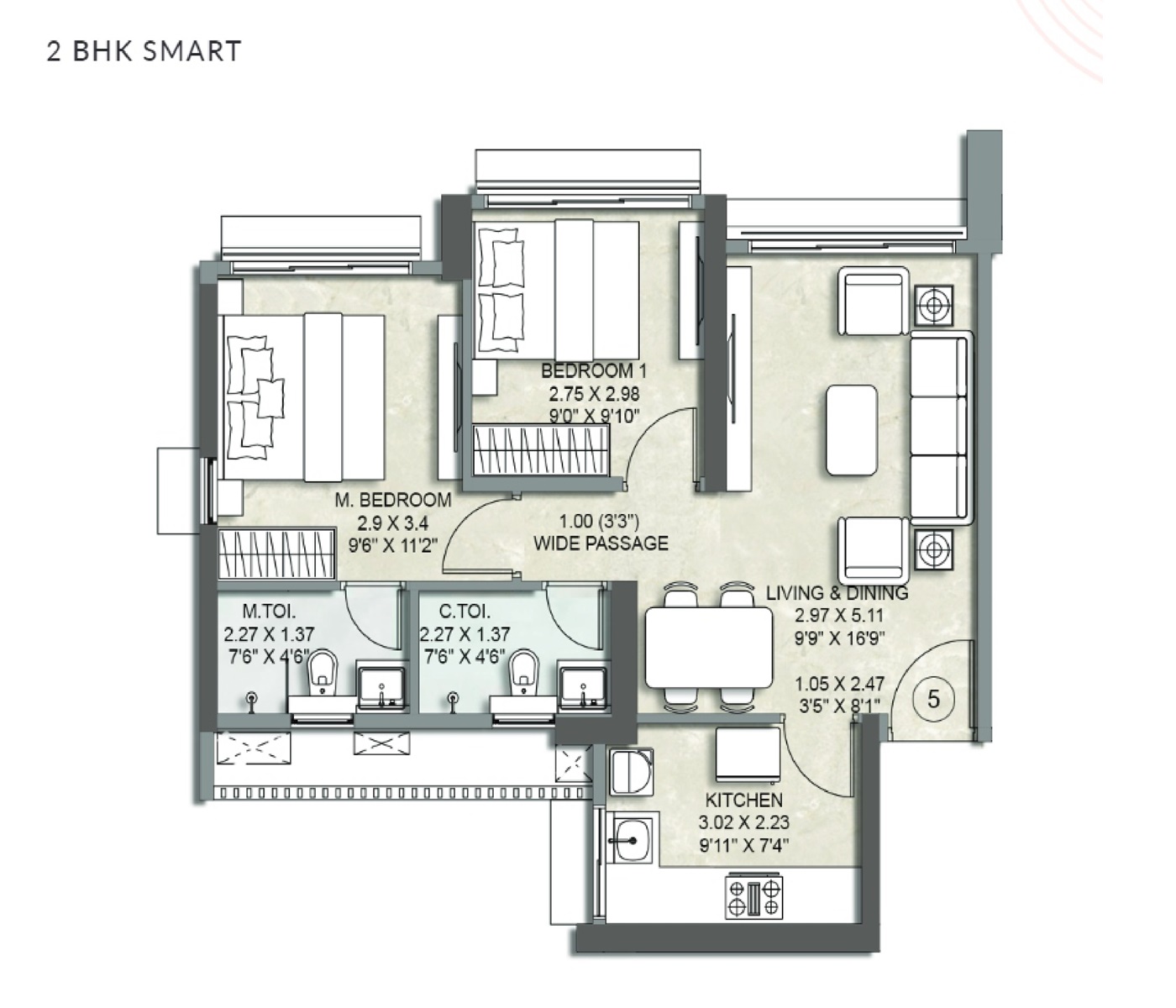 | 2 BHK | 781 Sq.Ft | ₹ 2.59 Cr* All Incl. |